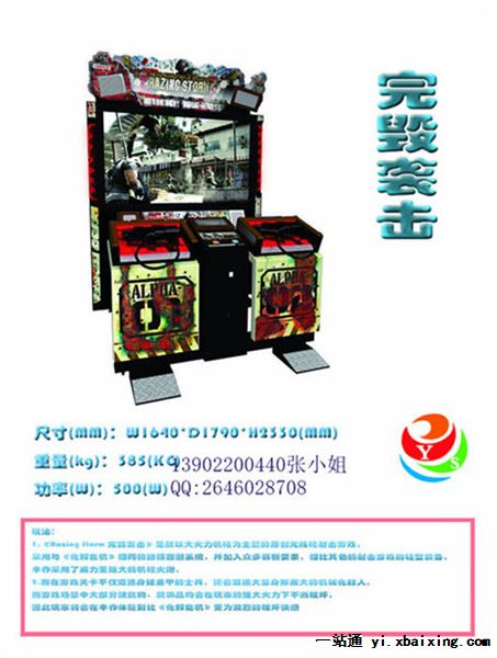 人要有梦想,没有梦想那和咸鱼有什么分别呢! 而我的梦想就是帮您的场地盈利! 永硕科技探索永无止境,在竞争日益激烈的今天,以产品优势持续高速发展。 本期热门推荐 产品名称: 完毁袭击 产品规格:2250*1470*1045mm 产品包装:气泡膜 售后:1年免费维修,终生维护 玩法介绍:投币-游戏开始,选择单人双人模式,游戏场景,在游戏世界尽情发挥您的射击天赋吧! 永硕厂家寄语:提高孩子的反应能力,大人的精神愉悦,适合亲自互动!